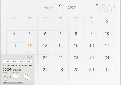 Midori 2026 Wall Calendar Hanger Calendar Refill 31382006
