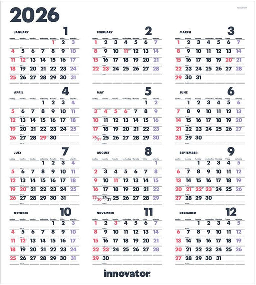 Innovator 2026 Wall Calendar 3-Month 31404006