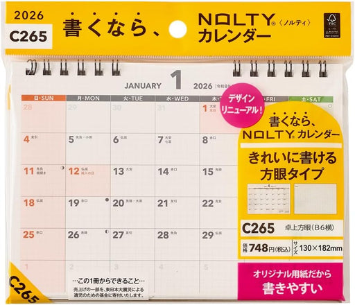 Noritsu NOLTY 2026 Desk Calendar B6 Horizontal C266