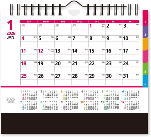 New Japan Calendar 2026 Desk Calendar Colorful Plan NK528