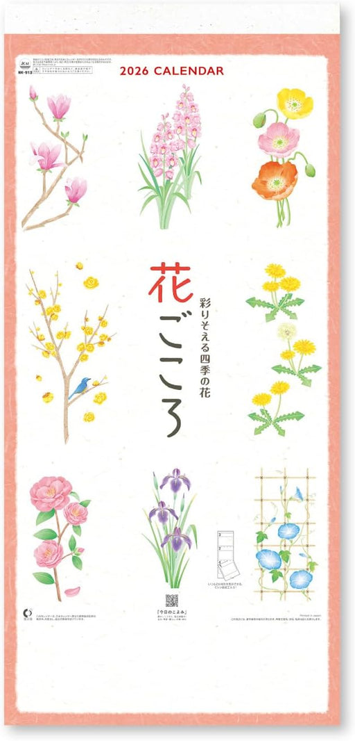 New Japan Calendar 2026 Wall Calendar Hana Gokoro 3-Month NK913