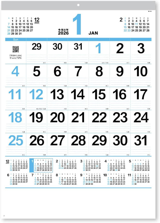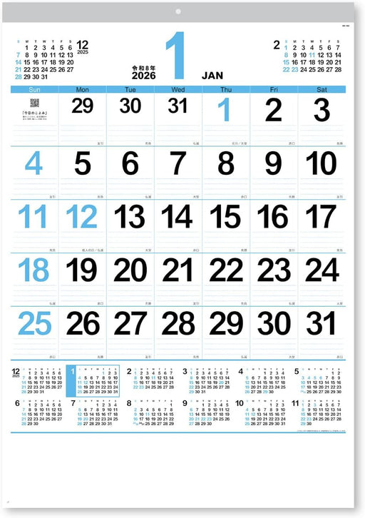 New Japan Calendar 2026 Wall Calendar Neo Plan with Annual Calendar NK164