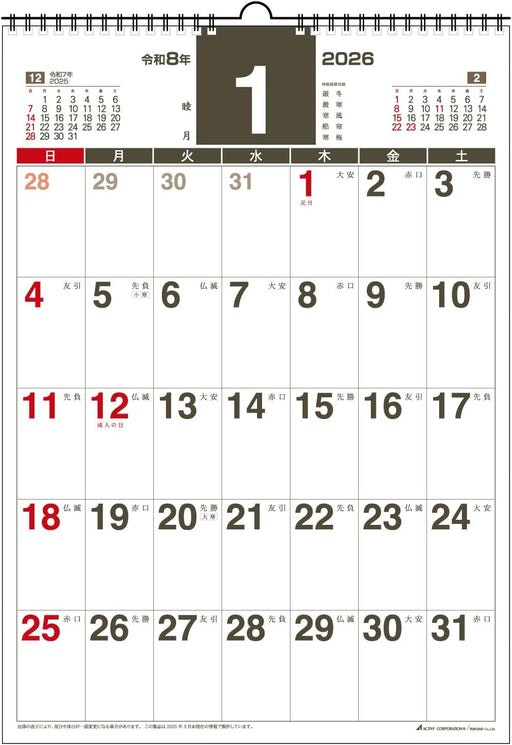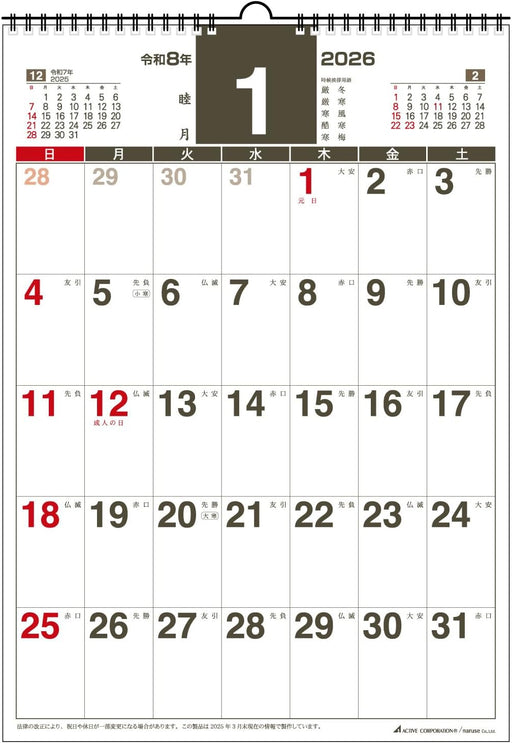 Other Calendar published by Active Corporation. Popular simple and easy-to-use series. Calendar with ample writing space.