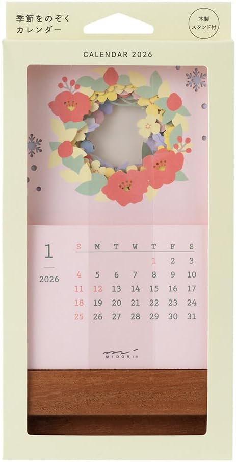 Midori 2026 Desk Calendar Seasonal Views Calendar - Floral Design with Limited Stickers 31368006