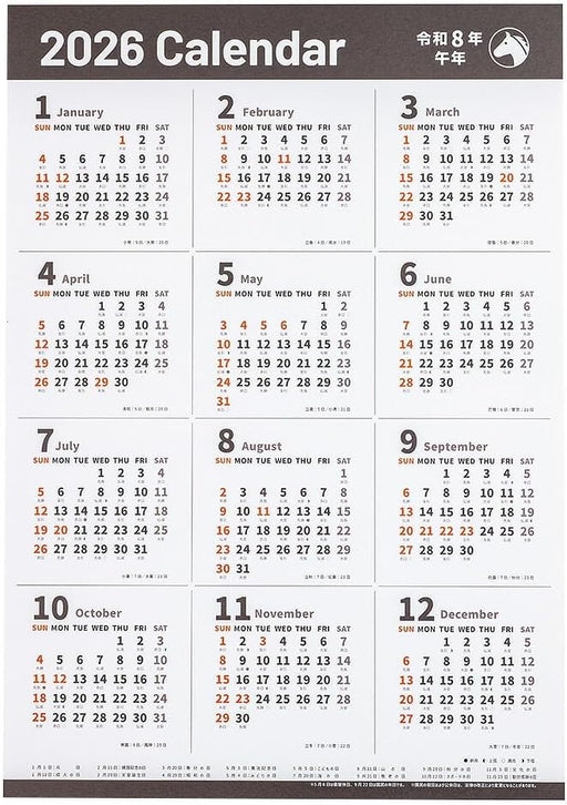 Nakabayashi 2026 Wall Calendar FSC-MX Moji Monthly Table B/Duodecimo 2-cutting COC-CLH-B2B-26