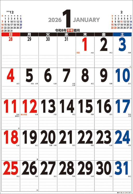 Try-X 2026 Wall Calendar Jumbo Schedule B2 Vertical Type CL-640 75x52cm