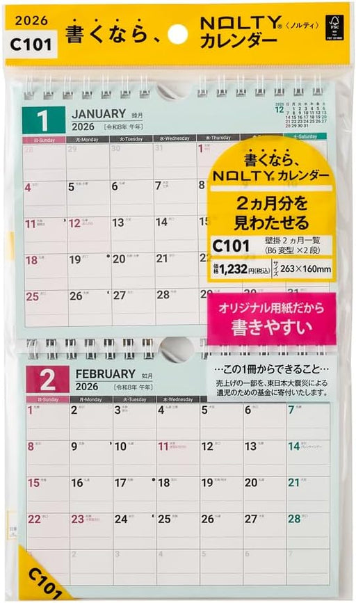 View full detailsNoritsu NOLTY 2026 Wall Calendar Modified B6 x 2-Tier, 2-Month View C101