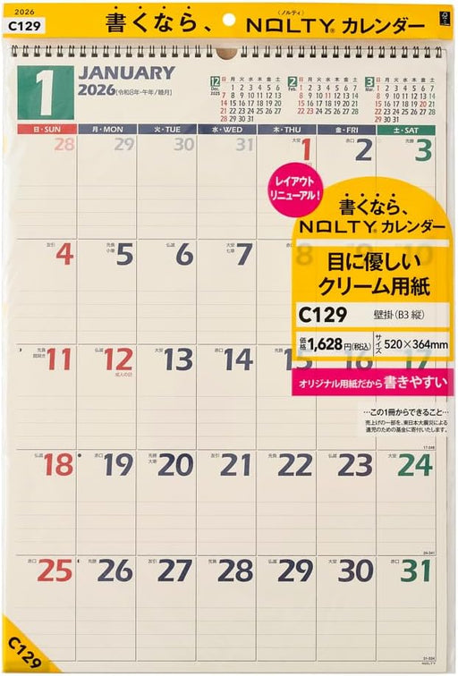 View full detailsNoritsu NOLTY 2026 Wall Calendar B3 C129
