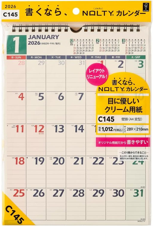 Noritsu NOLTY 2026 Wall Calendar A4 C117