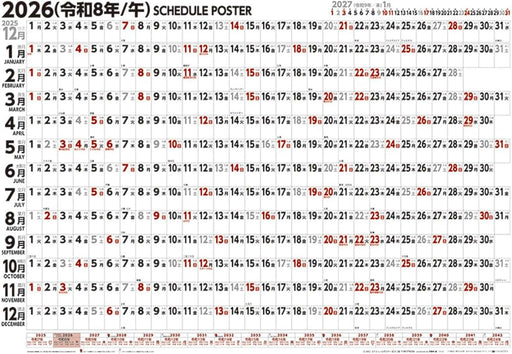 Try-X 2026 Wall Calendar Schedule Poster B2 Horizontal Type CL-642 52x73cm