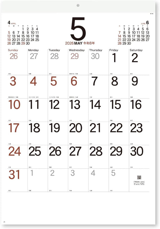 New Japan Calendar 2026 Wall Calendar Simple Schedule Jumbo NK192