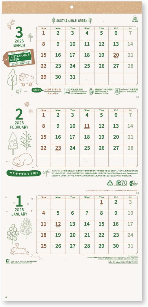 New Japan Calendar 2026 Wall Calendar Sustainable Green NK154
