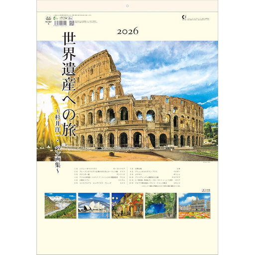 Todan 2026 Wall Calendar Journey to World Heritage Sites Yoichi Sugii Works 53.5 x 38cm TD-867