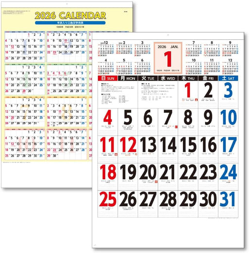 King Corporation 2026 Wall Calendar 3 Colors Jumbo with Chronology B2 771 x 515mm KC20001