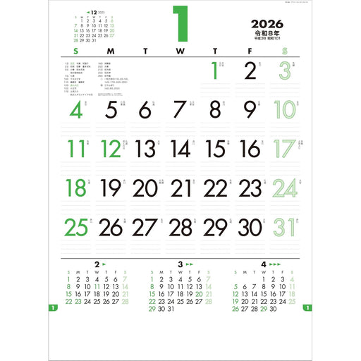Todan 2026 Wall Calendar Design Calendar DX Memo 60.8 x 42.5cm TD-691