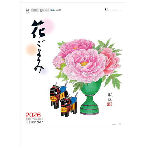 Todan 2026 Wall Calendar Hanagoyomi 52.7 x 38cm TD-851