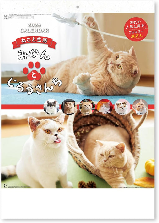 New Japan Calendar 2026 Wall Calendar Life with Cats Mikan to Jirousan Chi NK33