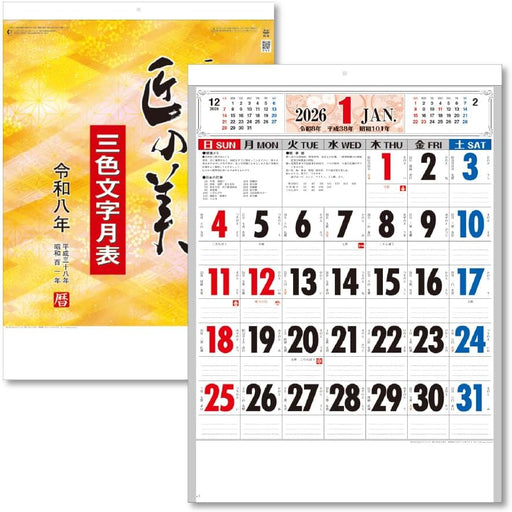 King Corporation 2026 Wall Calendar Takumi no Bi Three-color Moji B3 530 x 380mm KC20003