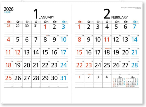 View full detailsNew Japan Calendar 2026 Wall Calendar 2 Month Schedule Memo Horizontal Type NK443