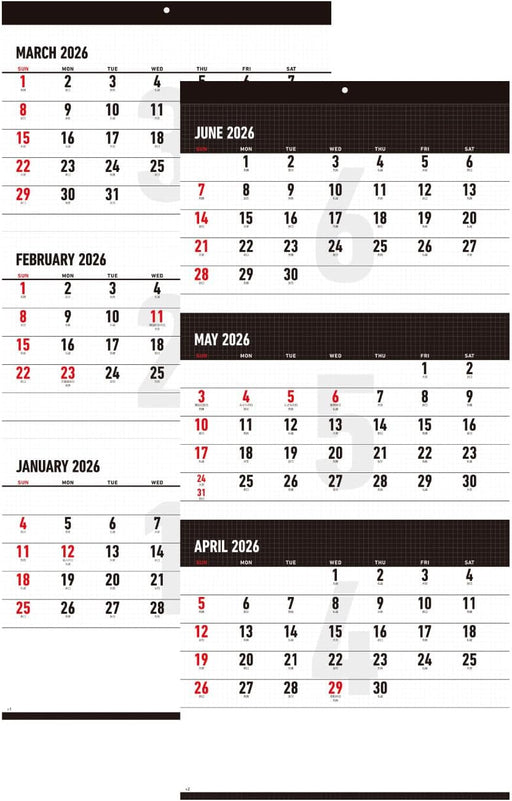 View full detailsNew Japan Calendar 2026 Wall Calendar White & Black 3-Month Large NK952
