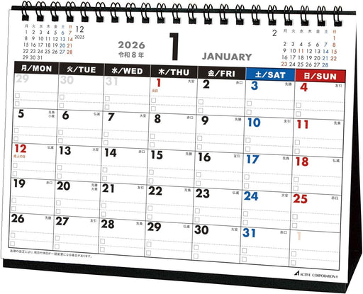 Other Calendar published by Active Corporation. Popular simple and easy-to-use series. Monday-start calendar with Saturdays highlighted in blue.