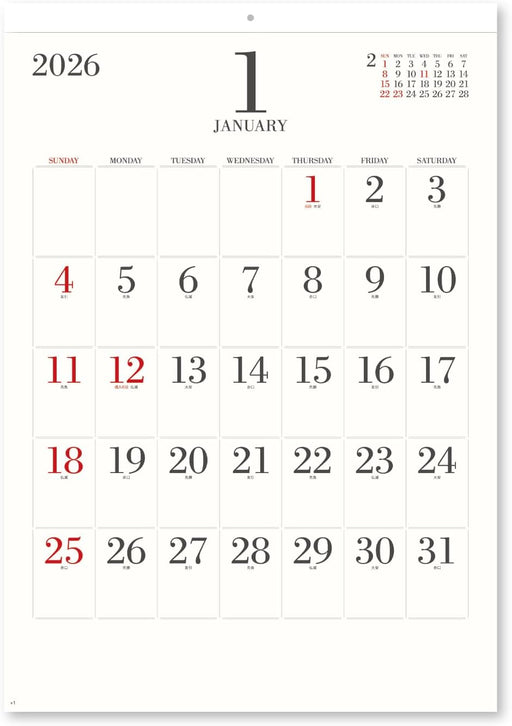 New Japan Calendar 2026 Wall Calendar Simple Face NK194