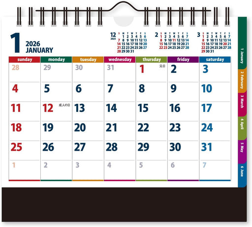 New Japan Calendar 2026 Desk Calendar Color Index Large NK8541