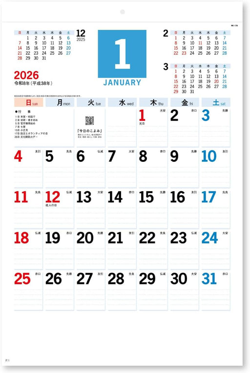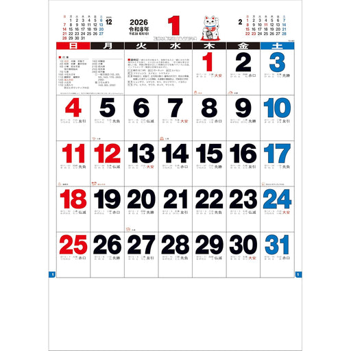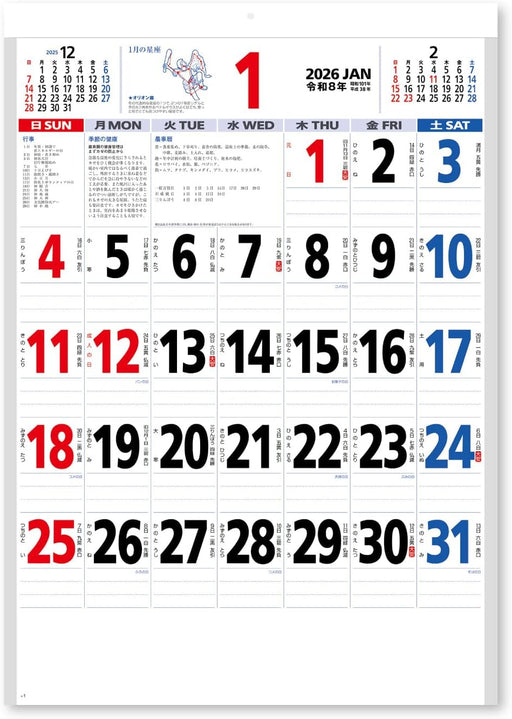 New Japan Calendar 2026 Wall Calendar with Zodiac Sign Moji Monthly Table with Memo 3 colors NK181