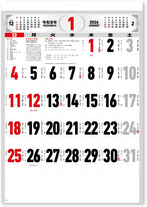 New Japan Calendar 2026 Wall Calendar Moji Monthly Table NK178
