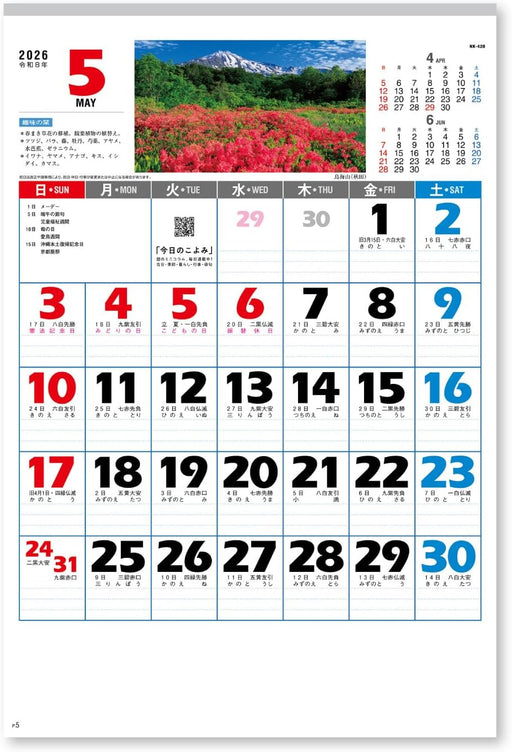 New Japan Calendar 2026 Wall Calendar Moji Monthly Table with Landscape NK420