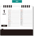 A clean, simple design that fits neatly on any desk. Displays up to two months ahead for easy long-term planning. Features ample memo space, perfect for business use. The ring binding uses an eco-friendly 'Eco Paper Ring' made entirely from paper, allowing for simple disposal.