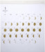 An embossed moon calendar featuring circular moon silhouettes with golden foil accents shining atop the embossing. The white background is ideal for writing.