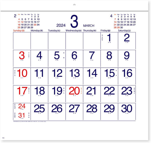New Japan Calendar Moji Monthly Table with Sign of Zodiac (3 Colors) 2022 Wall Calendar CL22-1043 White